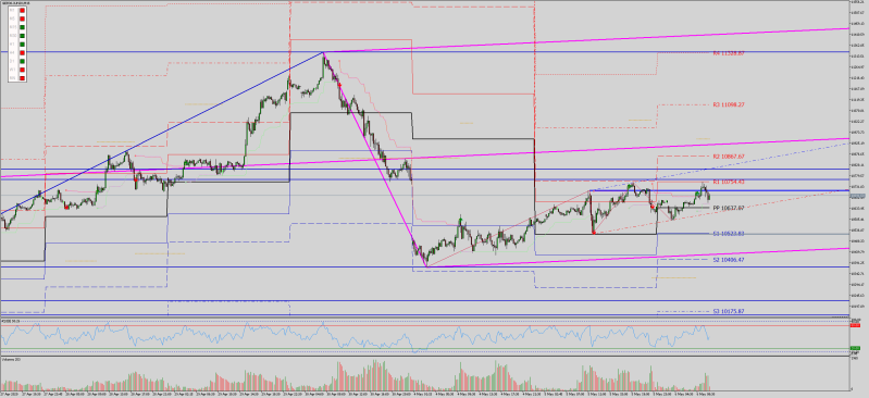 Alle indexen lopen nog netjes naar hun ML lijn toe behalve de DAX deze blijft erg bij de onderste lijn hangen, dus hier mag een schiff pitchfork getekend worden.
