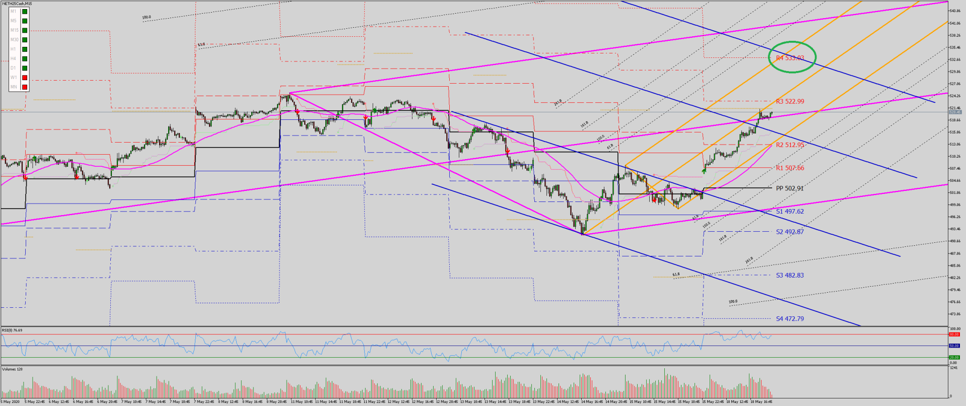 Vandaag heeft de AEX het doel van 518 ruim behaald, nu komt het doel 533 waarschijnlijk in zicht na een kleine terugval?