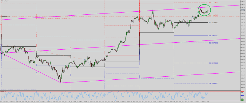 Vandaag was weer een mooie positieve dag voor de indexen, de DAX heeft het doel van 11.240 behaald en dit is de bovenkant van de pitchfork, hier kan mogelijk wat weerstand wachten.