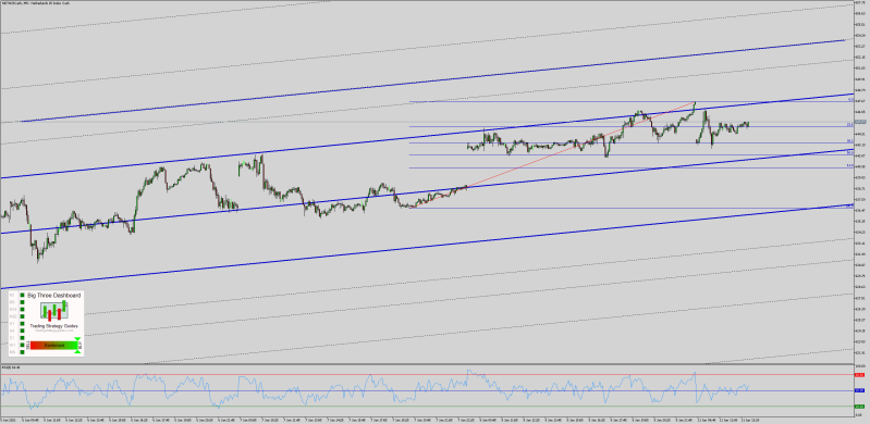 De AEX zit aan de bovenkant van de pitchfork, we hebben vanmorgen steun gevonden op de 38.2 fibo niveau, dit niveau is nu 2 keer getest