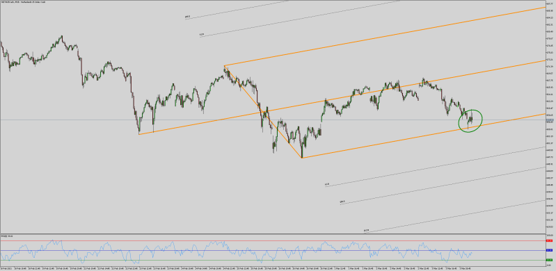 De AEX is vandaag aangekomen bij de onderste lijn van de pitchfork, nu in de gaten houden of we hier steun kunnen vinden, gaan we lager dan is 648 het eerste doel, blijven we er boven en vinden we steun dan is de ML lijn rond 669 weer het eerste doel.