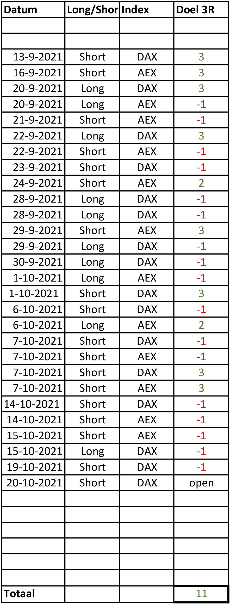 Het is nu de juiste mindset hebben en gewoon je systeem blijven volgen, doe je dit dan zal je zien dat de winnende trades vanzelf weer komen en je na verloop van tijd weer uit de verliezende reeks komt.