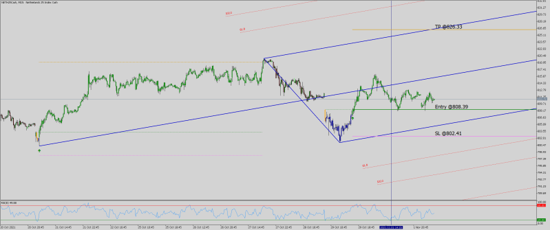 De AEX heeft het doel 820 volgens mij net niet behaald, waarschijnlijk zijn we onderweg naar de bovenkant van de pitchfork zo rond 826, we gaan het allemaal meemaken wat de markt gaat doen, het gaat zelden in een rechte lijn omhoog.